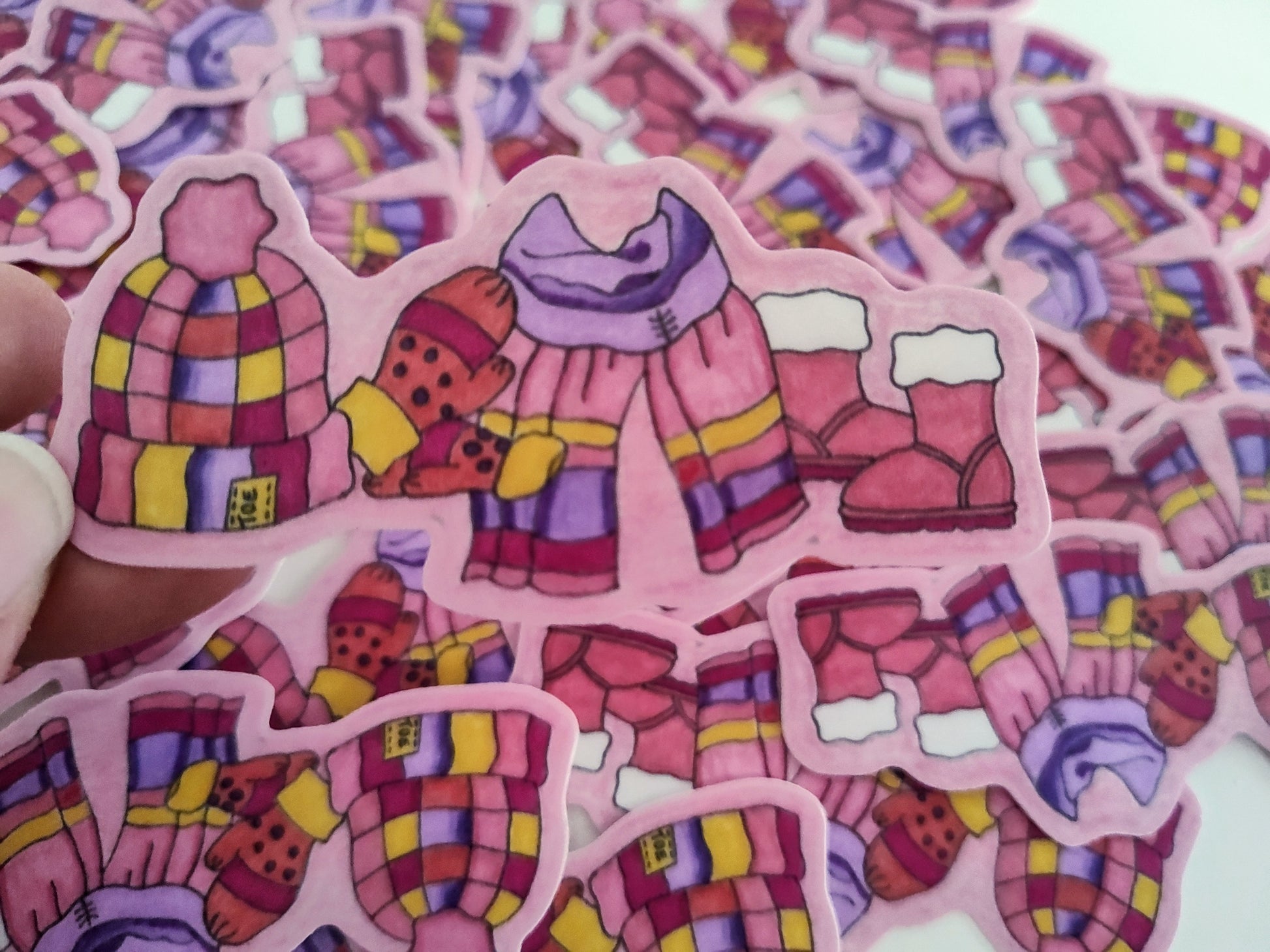 Are you ready for Old Man Winter? Bundle up because it's winter!!!! Welcome to our very first sticker that is specifically focused on a season such as winter. This sticker is so cute and inspired not only by the season, but by the heavy wardrobe that is worn. Here at Touch of Ebony, we didn't want to pass the opportunity by to create a design for one of the four seasons. In the winter months we throw on hats, gloves, scarves, and boots in order to stay warm. Pink, purple, yellow, and orange were the focus of colors for this girly sticker, which is perfect for kids, teens, and adults.