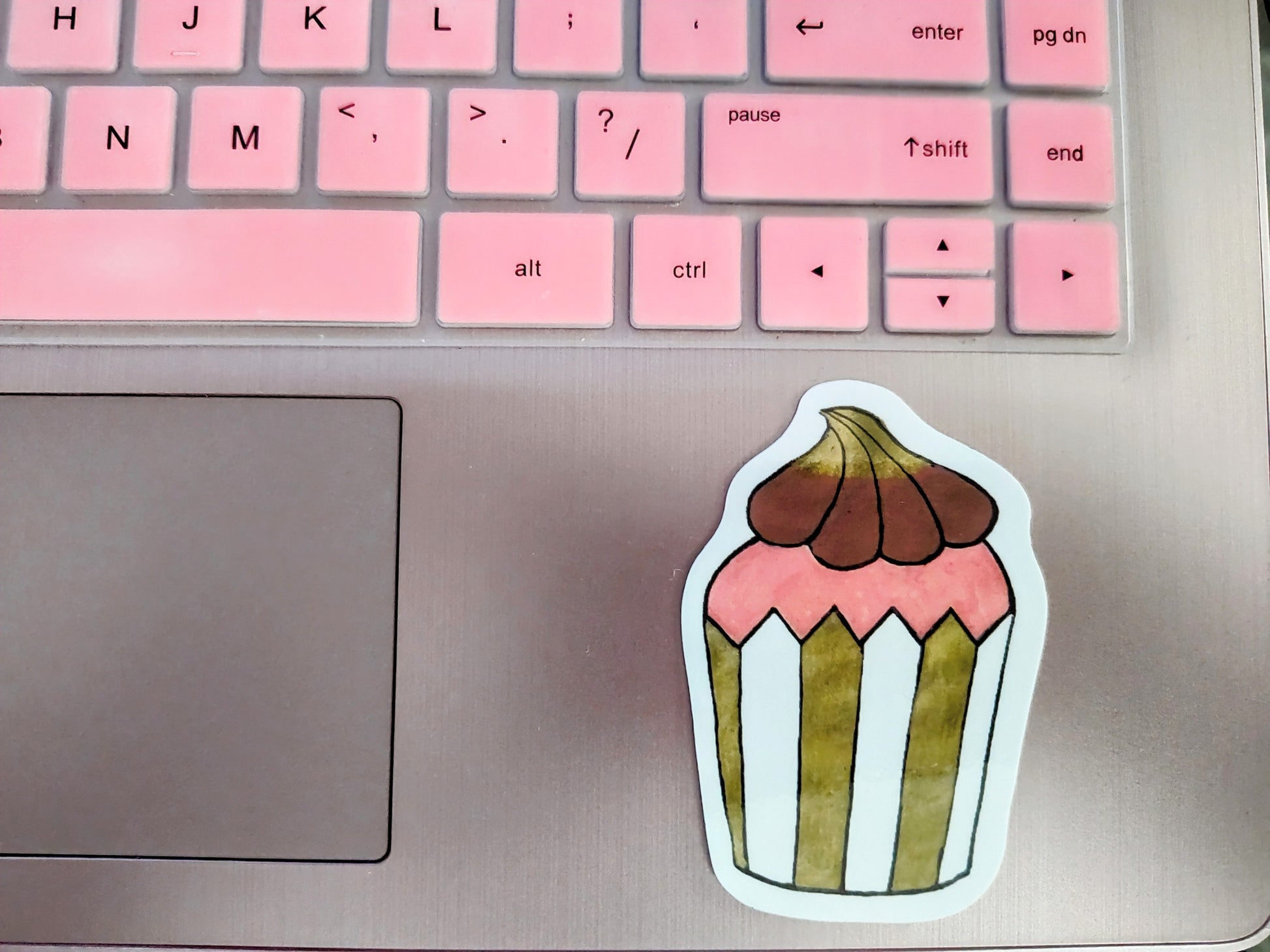 Pink & Gold Stripe Cupcake Vinyl Sticker