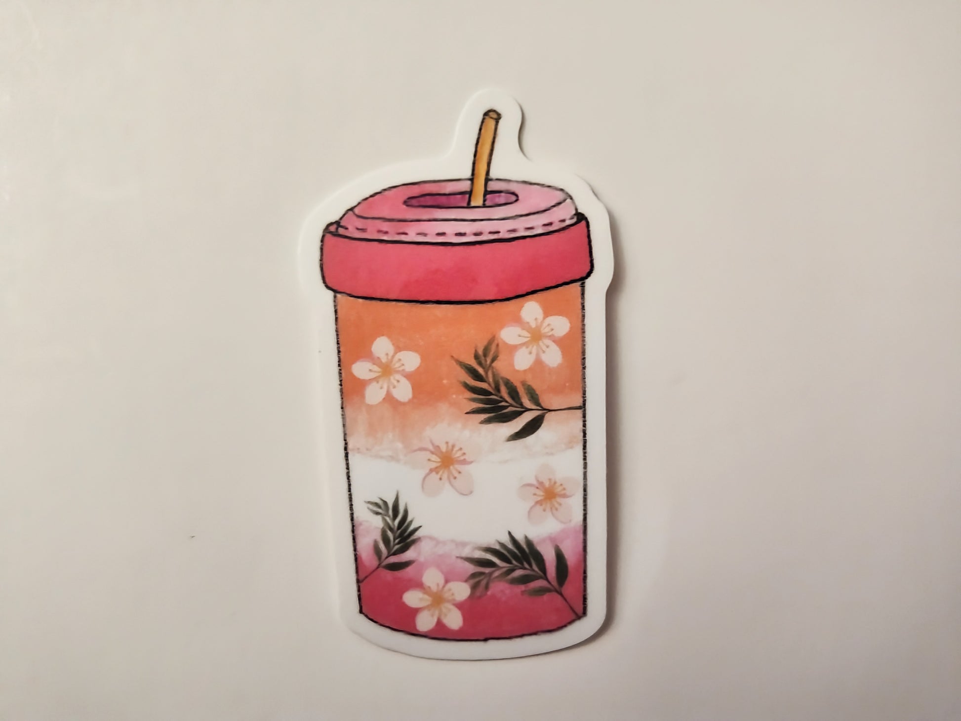 Pink Peach Too Cute Tumbler Vinyl Sticker